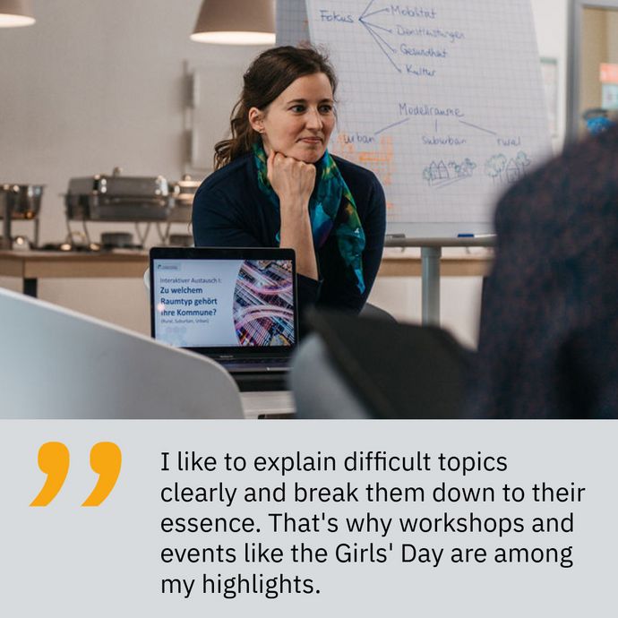 Some of my strengths are certainly that I can take things to a meta-level, think very logically and work in a structured way. At the same time, I guess I can explain difficult topics clearly and break them down to their essence. That's why workshops and events like the Girls' Day, where I can work on SmartCity-related topics with interested laypeople and have some fun, are among my highlights.