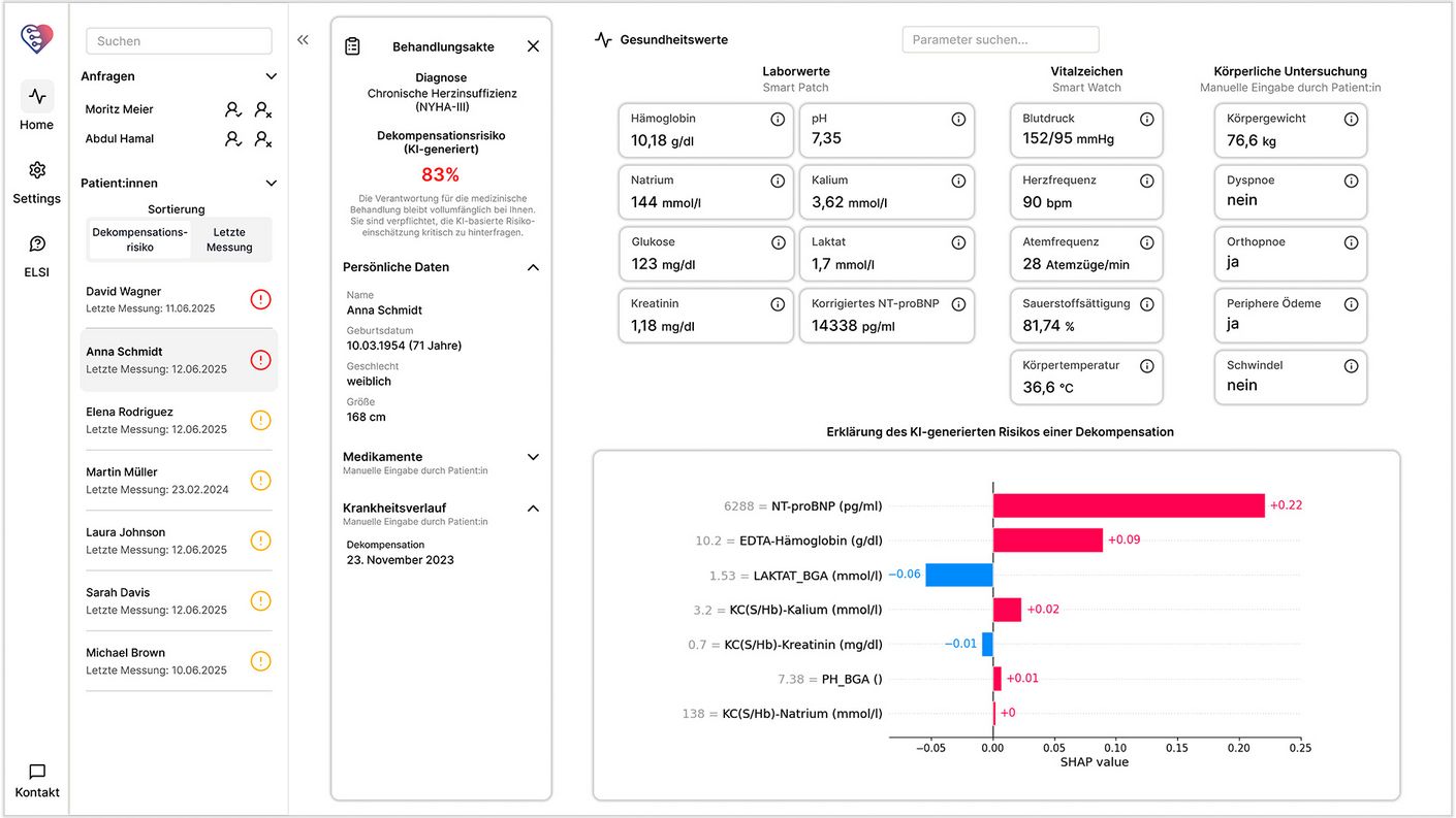 KardioInterakt adressierte diese Bruchstellen nicht isoliert, sondern als soziotechnisches Systemproblem. Ziel war es, klinisch relevante Parameter kontinuierlich im Alltag zu erfassen, Veränderungen datenbasiert zu analysieren und medizinisches Fachpersonal frühzeitig zu informieren. Die Künstliche Intelligenz wurde dabei ausdrücklich als Assistenzsystem konzipiert – nicht als Ersatz für ärztliche Entscheidungen, sondern als Instrument zur Unterstützung präventiver Interventionen.