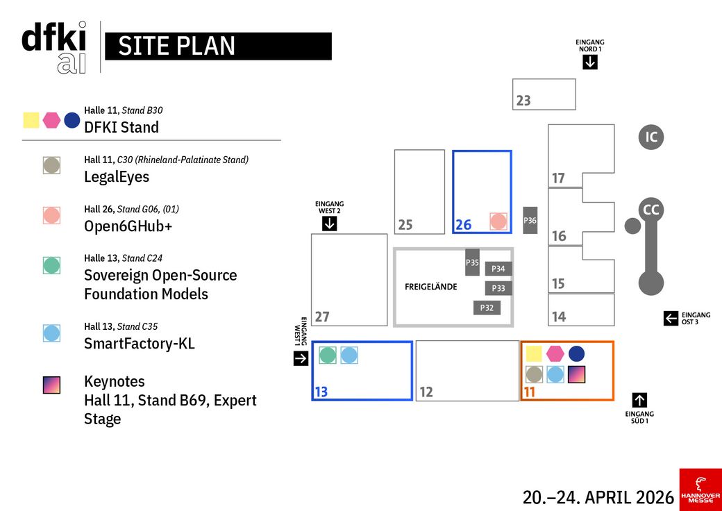 Mit zwölf Exponaten am Stand des DFKI in Halle 11 sowie weiteren Exponaten auf Partnerständen präsentiert das DFKI praxisnahe Projekte, die den Transfer von der Forschung in die industrielle Anwendung konkret erlebbar machen.